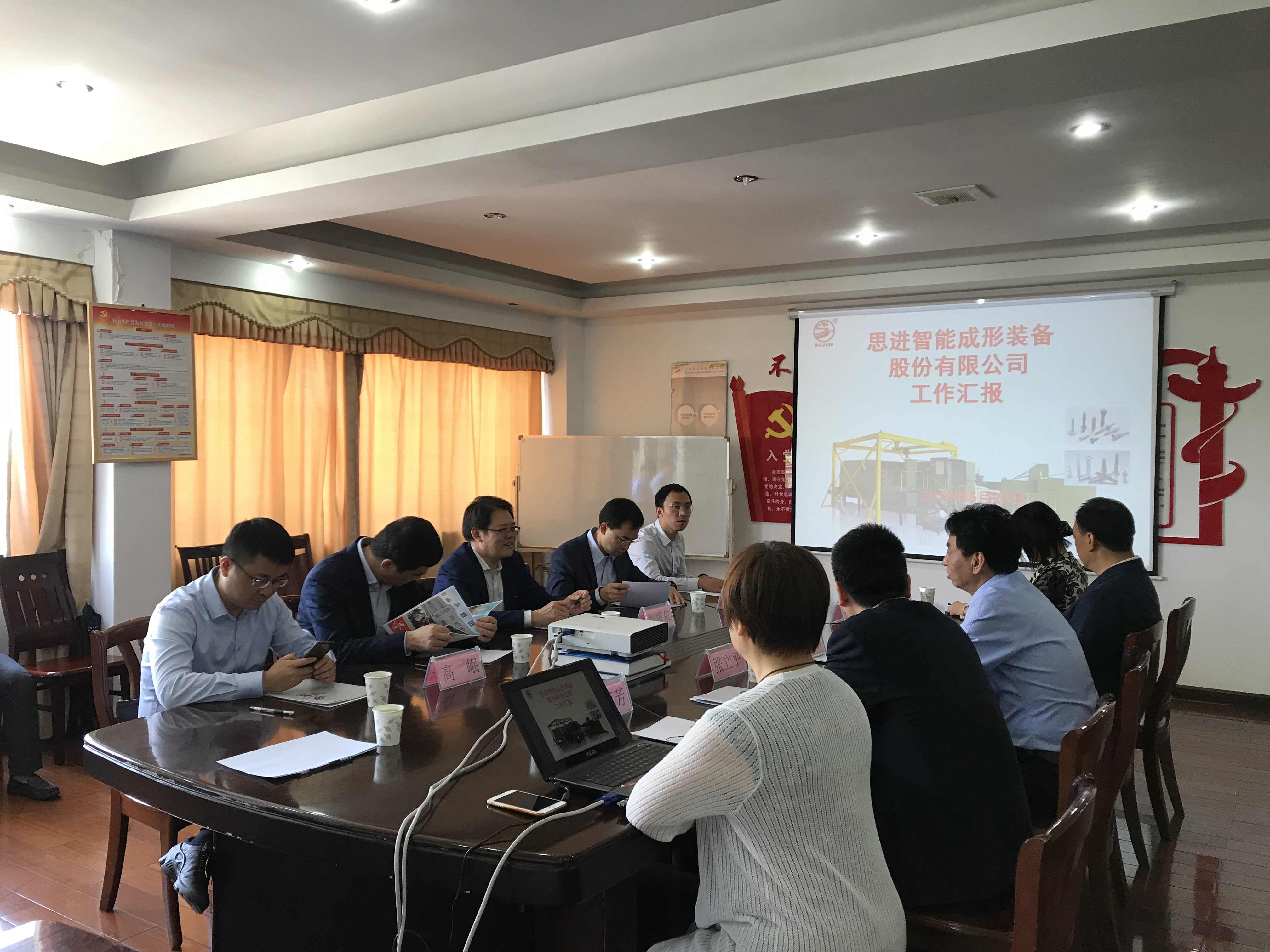 2019年5月22日上午,國務院辦公廳秘書局巡視員鄭耀東等領導一行在市金融辦黨組書記倪煒、高新區管理會黨組成員、副主任張立平等領導的陪同下,調研了思進智能成形裝備股份有限公司。