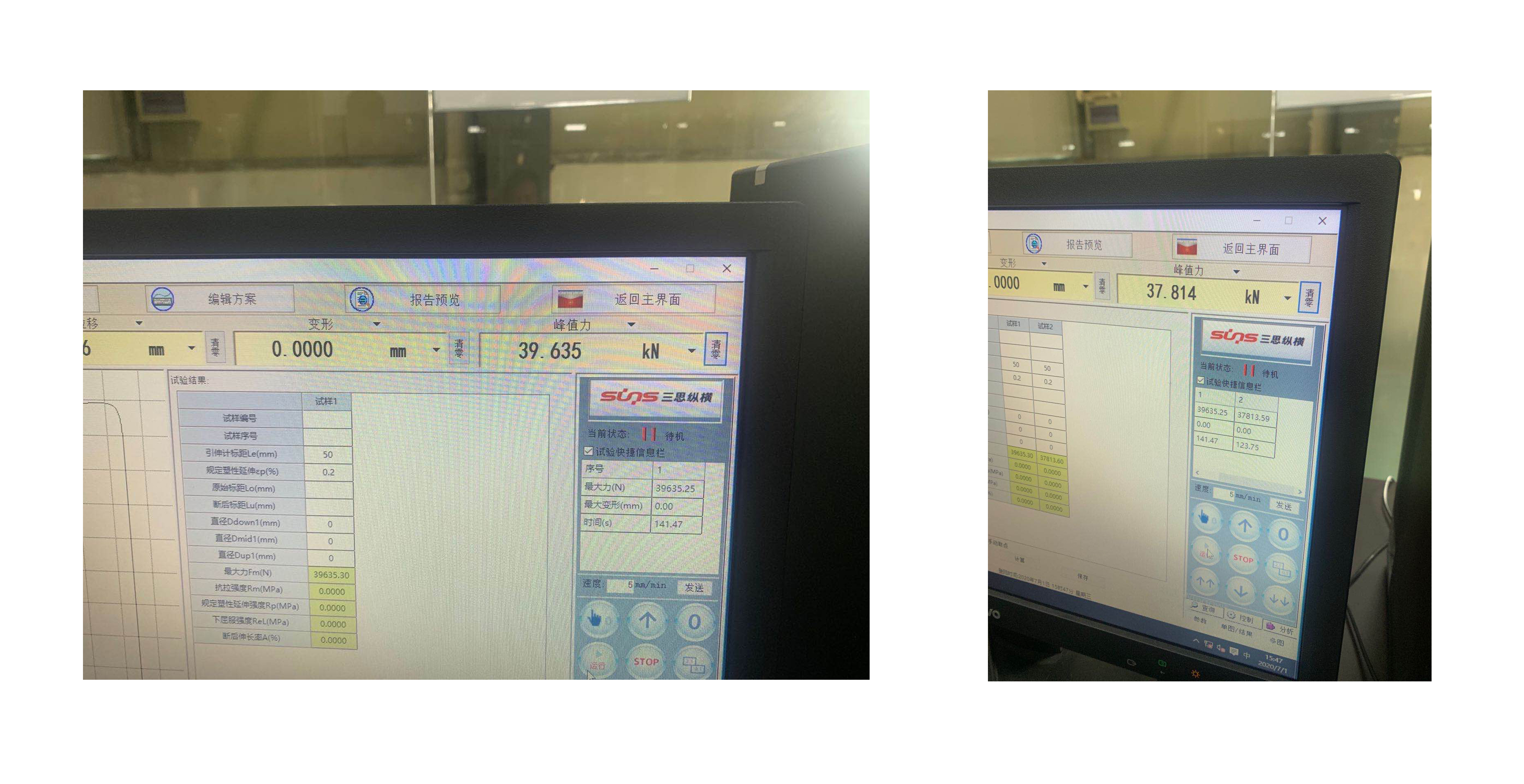 思進智能設(shè)有理化測試中心并配備拉力試驗機。日前,為檢驗長徑比超16倍空心長零件的工藝有效性,應(yīng)客戶要求對該零件進行了拉力試驗。試驗結(jié)果顯示,該零件可承受10KN以上拉力值,并且在拉斷時,斷裂處位于桿部位置,而非頭部與桿部結(jié)合處,符合客戶預(yù)期要求。